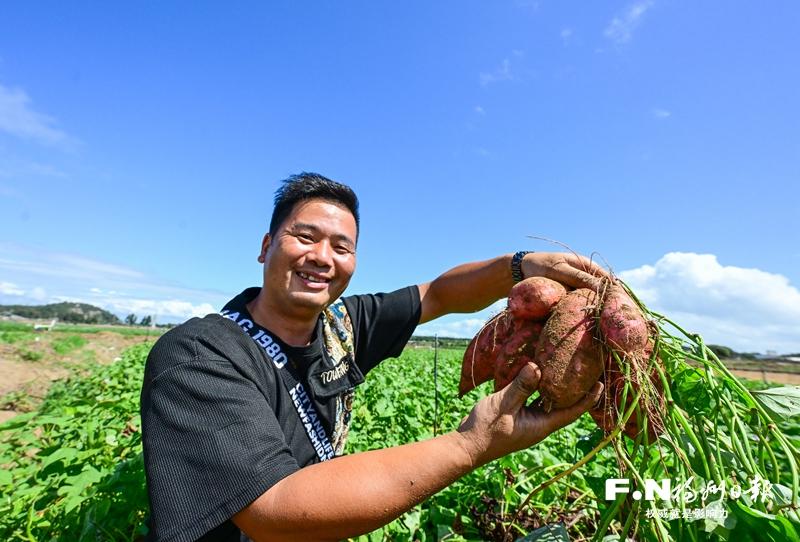 长乐文岭镇农民董锋渠展示优质地瓜。