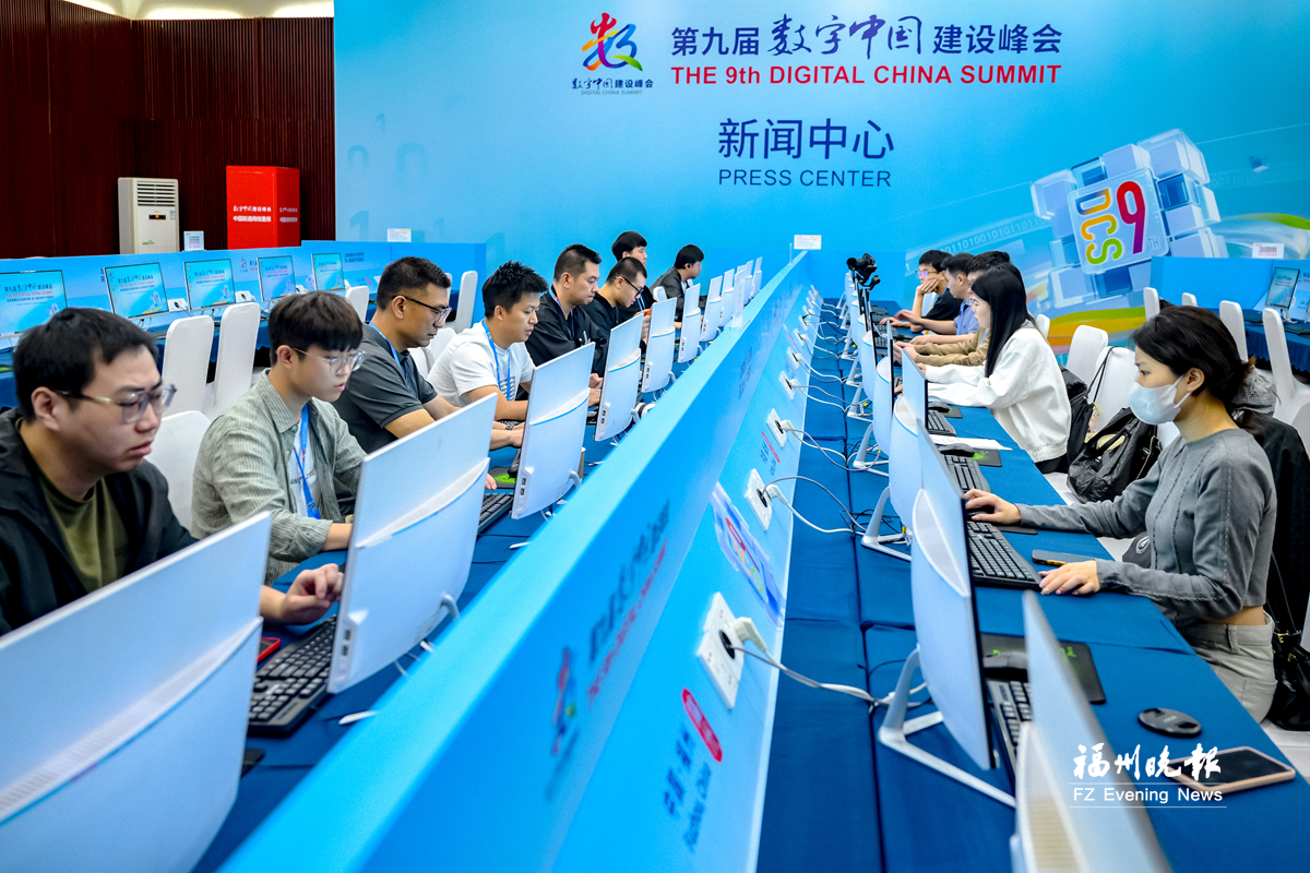 数字中国建设峰会新闻中心进行各项功能测试检验。记者 陈暖 摄