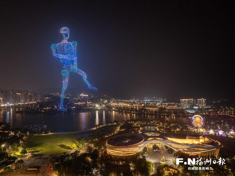 为迎接第九届数字中国建设峰会,28日晚,在风景秀丽的旗山湖畔,3333架无人机以主题为“福聚榕城·数字领航”的集群光影秀,点亮榕城夜空,为广大市民游客送上气势恢宏、独具榕城特色的视觉盛宴。