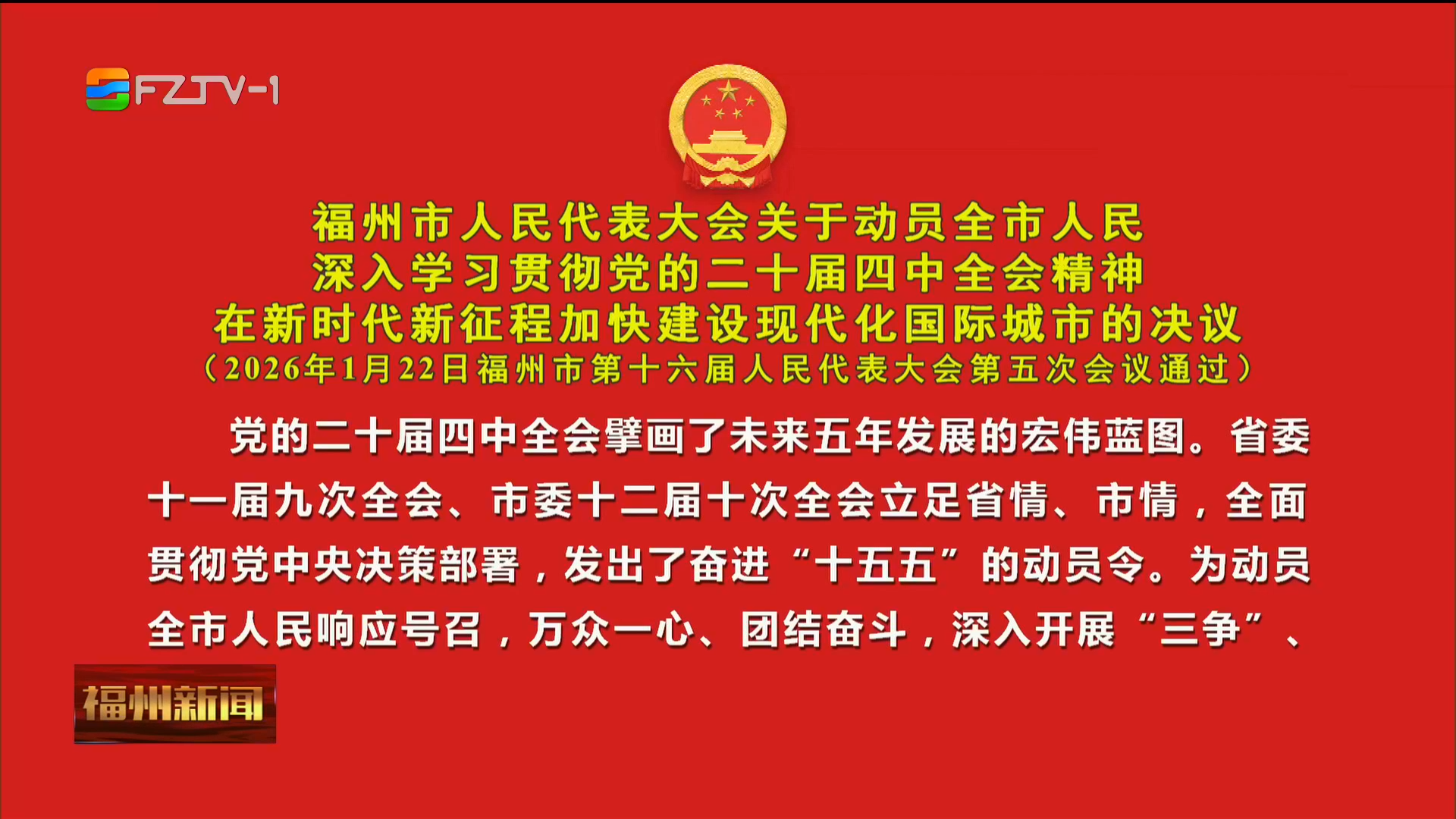 福州市人民代表大会关于动员全市人民 深入学习贯彻党的二十届四中全会精神 在新时代新征程加快建设现代化国际城市的决议