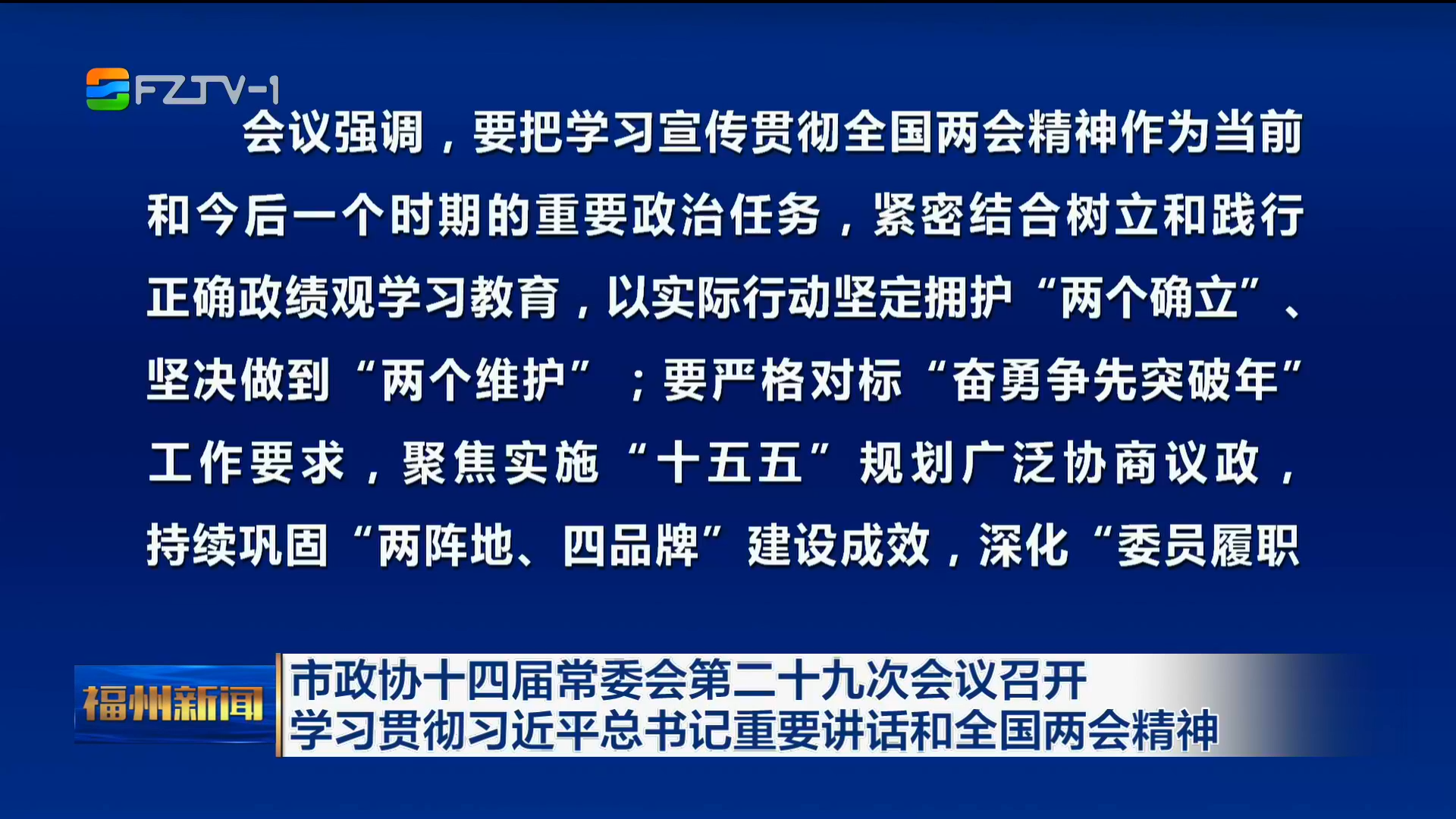 市政协十四届常委会第二十九次会议召开 学习贯彻习近平总书记重要讲话和全国两会精神