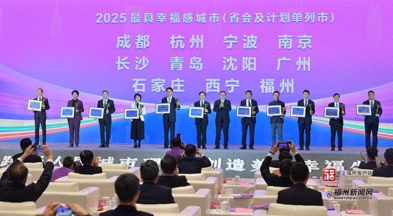 12月9日,在成都举办的2025幸福城市论坛上,福州作为11个获奖的省会和计划单列市之一,荣获“最具幸福感城市”称号。市长吴贤德出席论坛作主旨发言,并代表福州领奖。