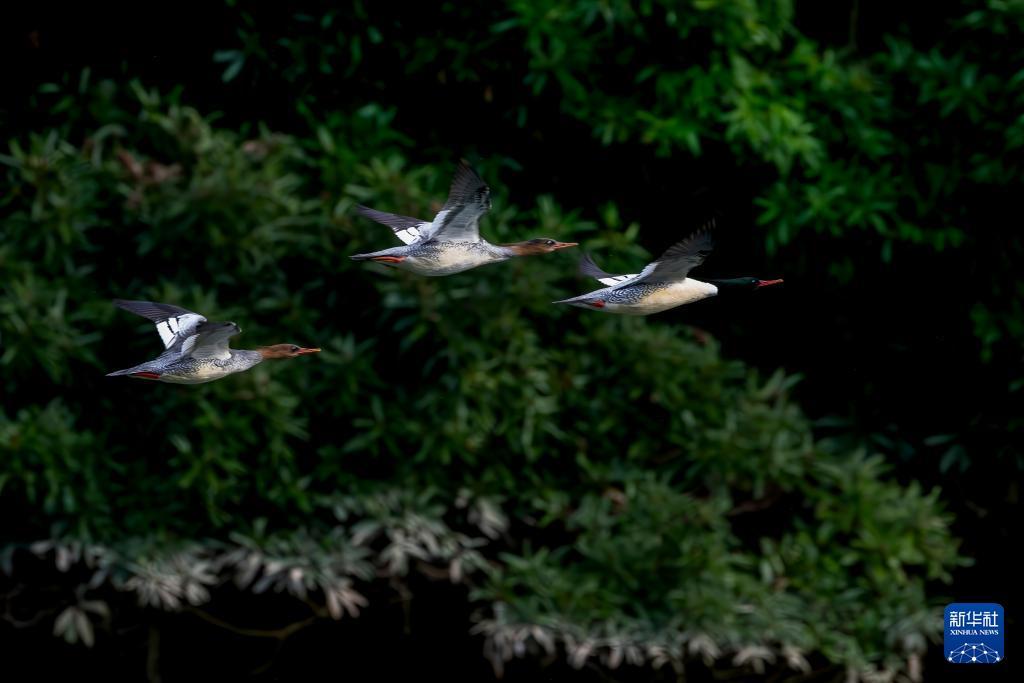 中华秋沙鸭是我国独有的珍稀鸟类,属国家一级重点保护野生动物,享有鸟类“活化石”美誉。随着福建省福州市生态保护成效日益显著,这一珍贵鸟类成为“常客”,连续多年来大樟溪流域越冬。