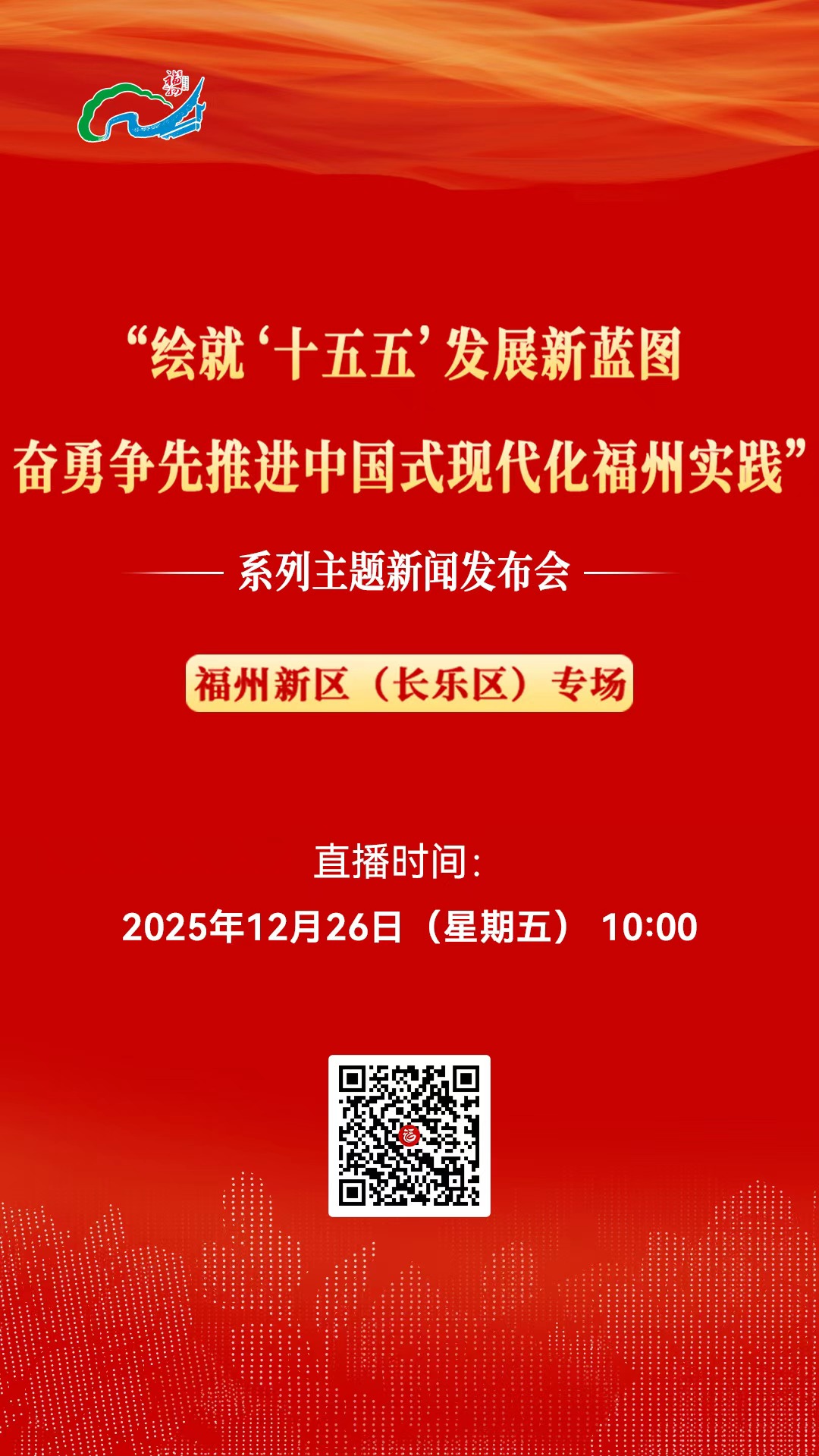“绘就‘十五五’发展新蓝图奋勇争先推进中国式现代化福州实践”系列主题新闻发布会福州新区(长乐区)专场26日上午召开 2025-12-26 09:03 福视悦动 来源:福州广播电视台资讯融媒体中心 编辑:林昱星