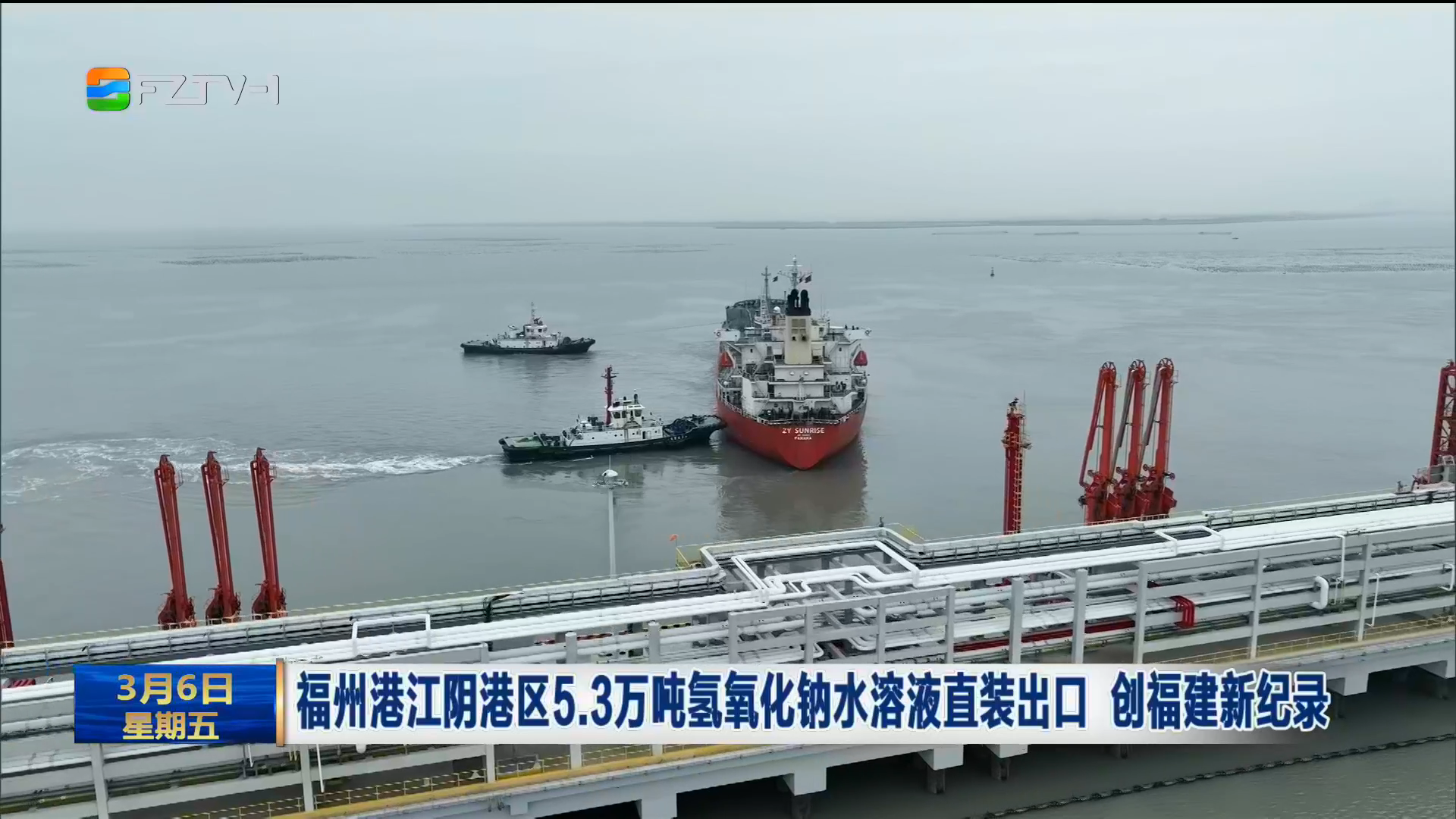 福州港江阴港区5.3万吨氢氧化钠水溶液直装出口 创福建新纪录