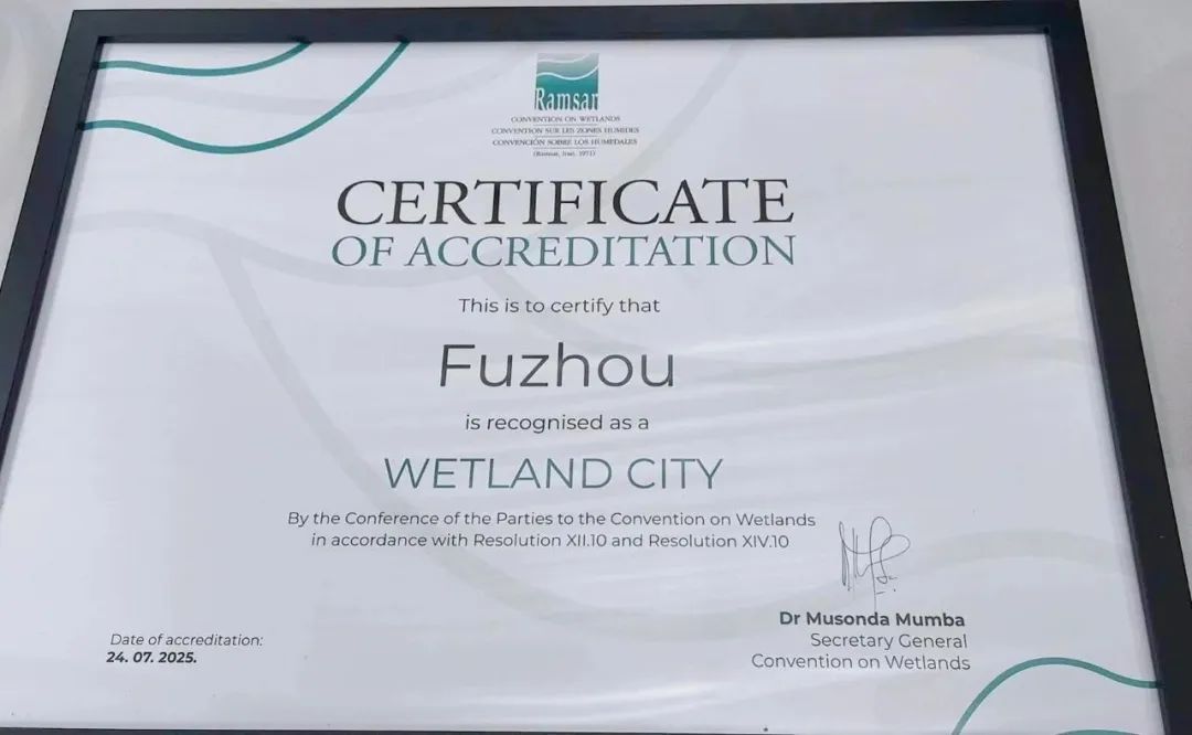 我市于2023年正式启动国际湿地城市创建工作,湿地保护各项指标均达到国际标准。2025年7月23日—7月31日《湿地公约》第十五届缔约方大会期间,福州市被正式授予“国际湿地城市”称号,成为中国9座新入选城市之一,也是福建省唯一入选城市。