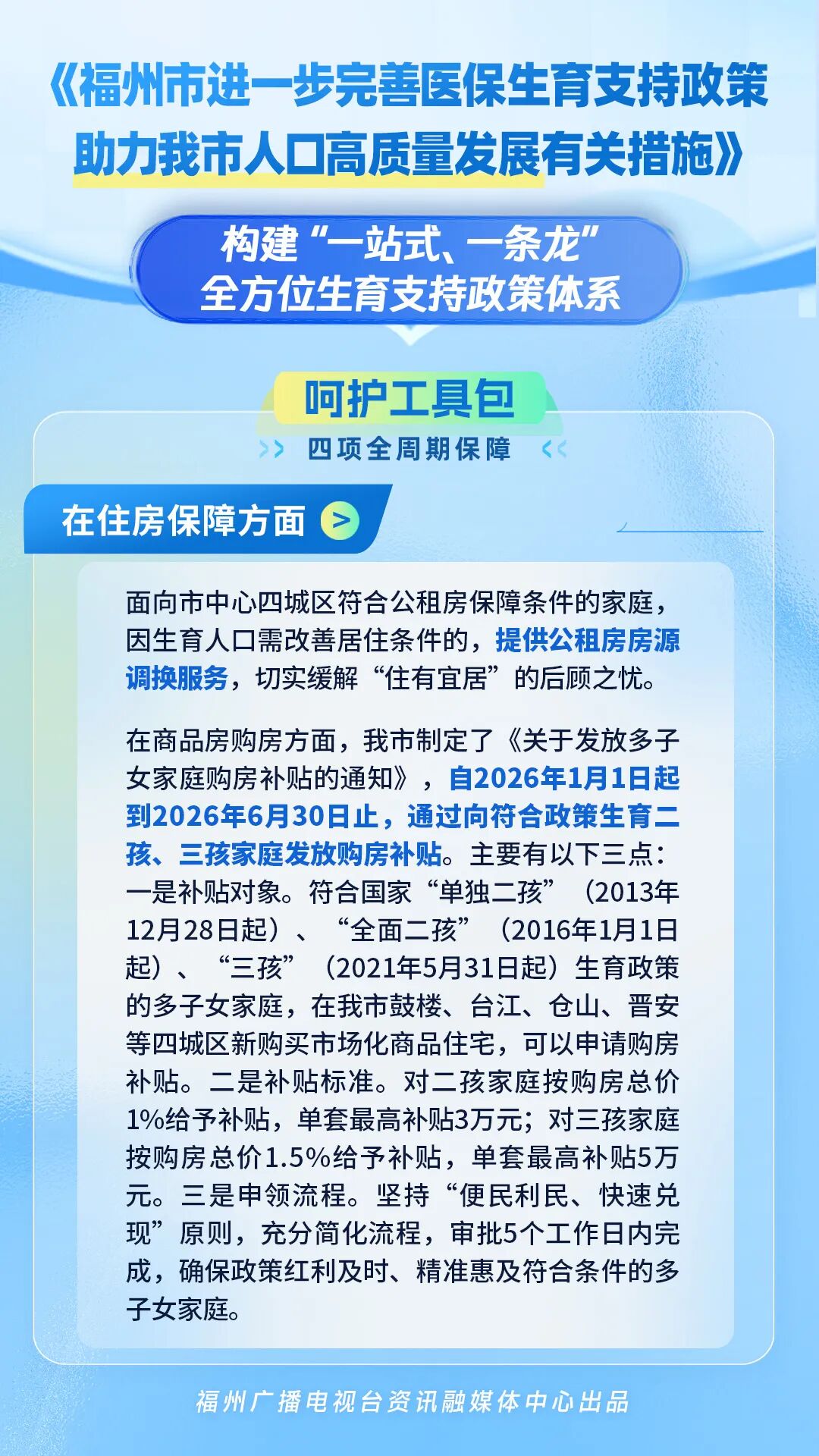 近期,福州市委市政府研究出台《福州市进一步完善医保生育支持政策助力我市人口高质量发展有关措施》,并配套推出一系列深化举措,旨在构建“一站式、一条龙”的全方位生育支持政策体系,该政策拟于2026年1月1日起正式实行。