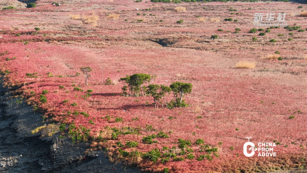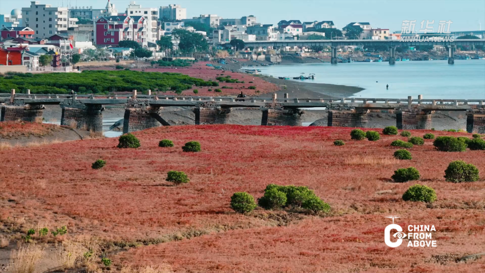 近日,福建省福清市海口镇龙江桥两岸的南方碱蓬草迎来最佳观赏期。连片生长的玫红色碱蓬草如“红海”铺展,与龙江古桥相映成趣,交织成冬日独有的浪漫景致。