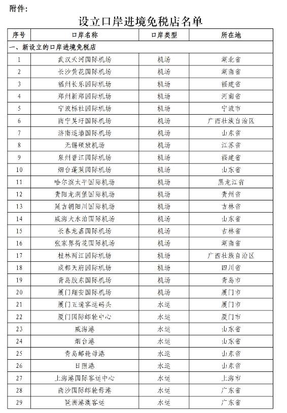 二、继续在海口美兰国际机场、蛇口邮轮中心等11个口岸设立口岸进境免税店(在本通知所附《设立口岸进境免税店名单》中为序号42—52)。