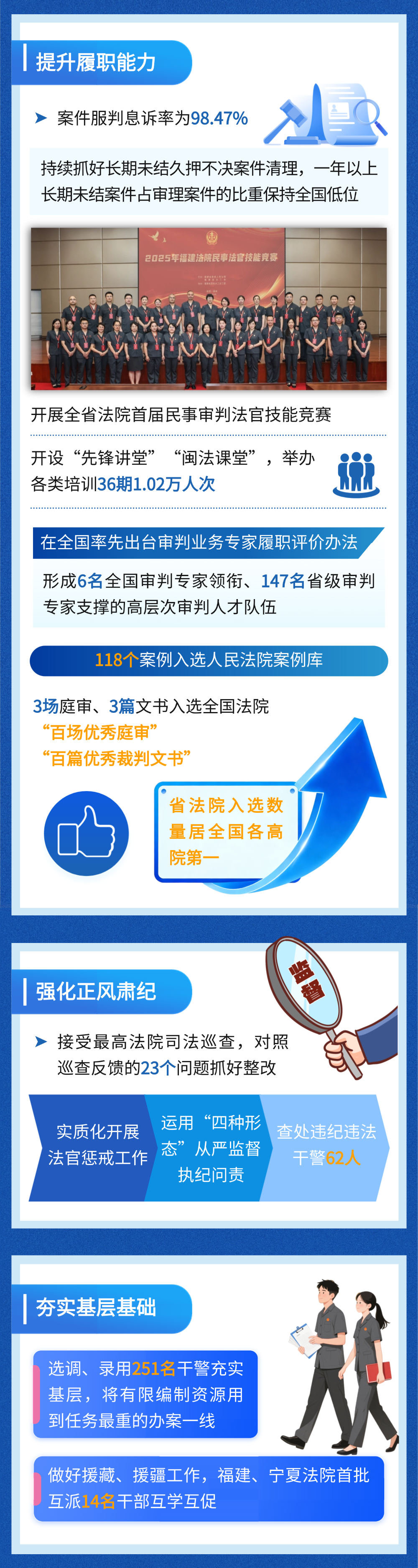 一图读懂福建高院工作报告 2026-01-29 12:17 福视悦动 2026年1月29日上午,福建省第十四届人民代表大会第四次会议举行第二次全体会议,福建省高级人民法院院长金银墙向大会作法院工作报告。 来源:福建高院微信公众号 编辑:翁彬冰