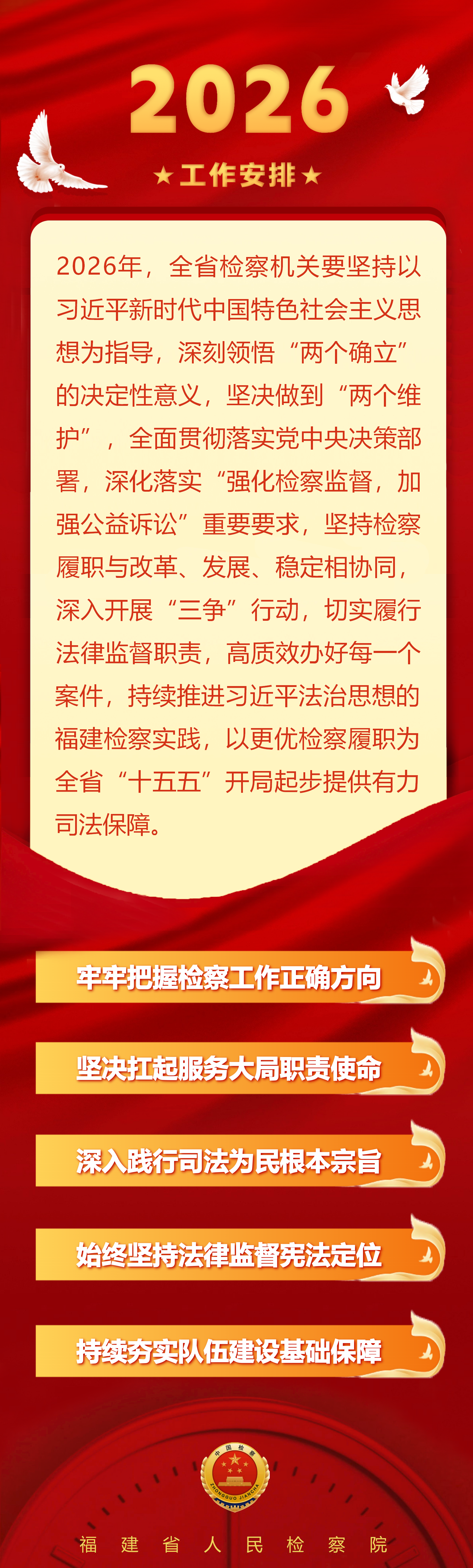 2026年1月29日上午,福建省人民检察院检察长侯建军在省十四届人大四次会议上作省检察院工作报告。过去一年,检察履职有何新成效?新的一年,又将如何持续奋勇争先?一图读懂,和您一起速览福建检察的年度答卷与新程安排: