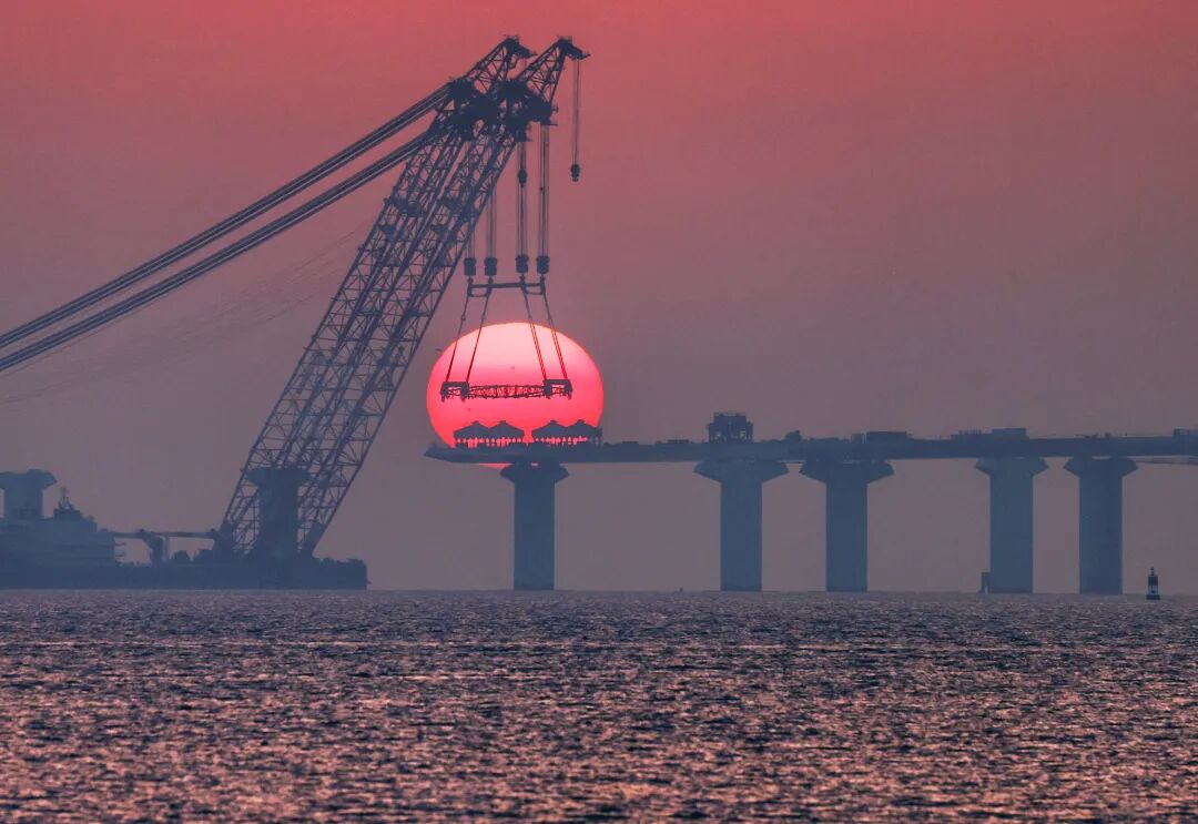 2月13日清晨,厦金大桥建设现场。陶卉摄