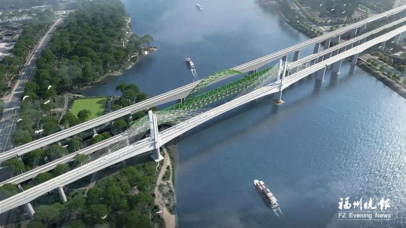 新建温福高铁(福建段)闽江特大桥效果图。