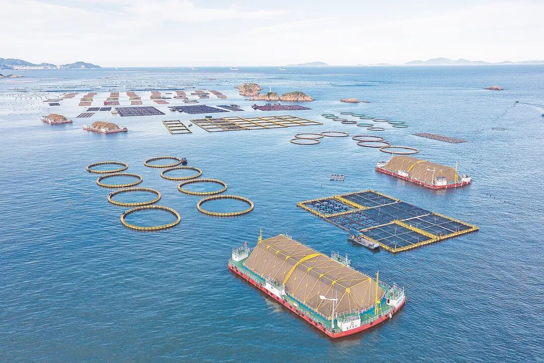 连江县定海湾海面上漂浮的深远海养殖平台。资料图片