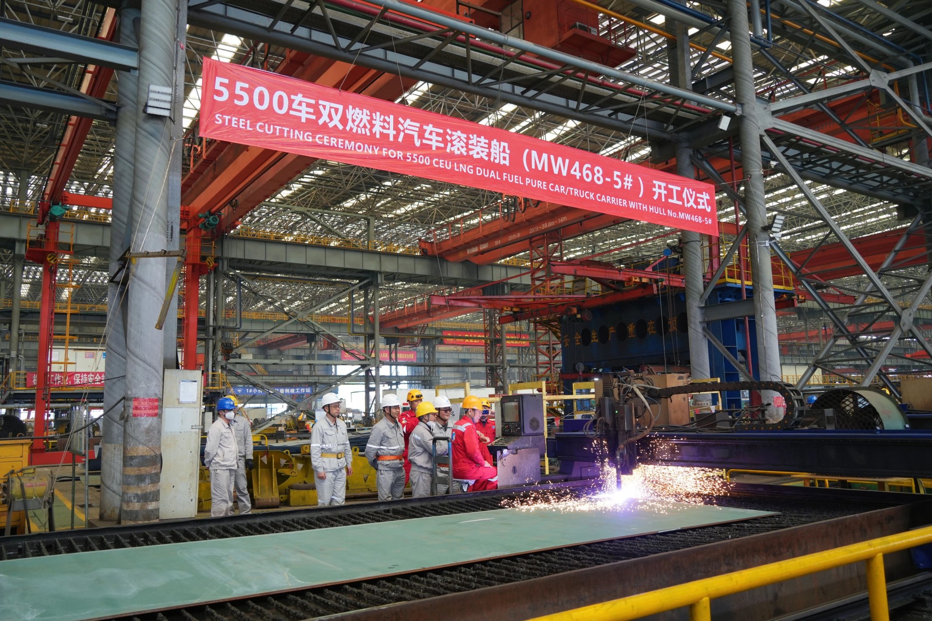 此外,该公司承建的5500车LNG(液化天然气)双燃料汽车滚装船(MW468-5)也顺利开工。该船总长190米,型宽35.6米,型深14.1米,载重吨约为7800吨,能够运输乘用车、面包车、公共汽车、卡车、货运集装箱拖车等。