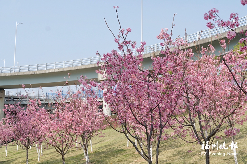 公园管理处工作人员介绍,目前盛放的这片樱花位于洪塘大桥下靠近金山寺入口处。乌龙江公园分散种植了500余株福建山樱花,整体花期预计可持续至4月初。