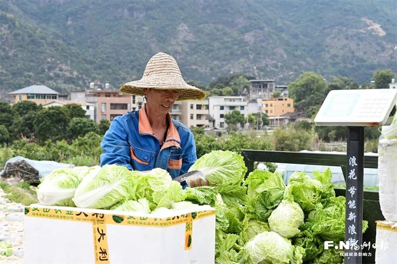 企业入驻后的第一件事,不是急着播种,而是养地。“想要种出高品质的蔬菜,土壤养护是关键。这两年,我们累计投入上千吨有机肥改良土壤,让这片土地更适合蔬菜生长。”福州新丰农业有限公司相关负责人介绍,采收后的新鲜蔬菜,将直接对接朴朴、永辉等商超及本地各大酒店,实现“从田间到餐桌”的直达。