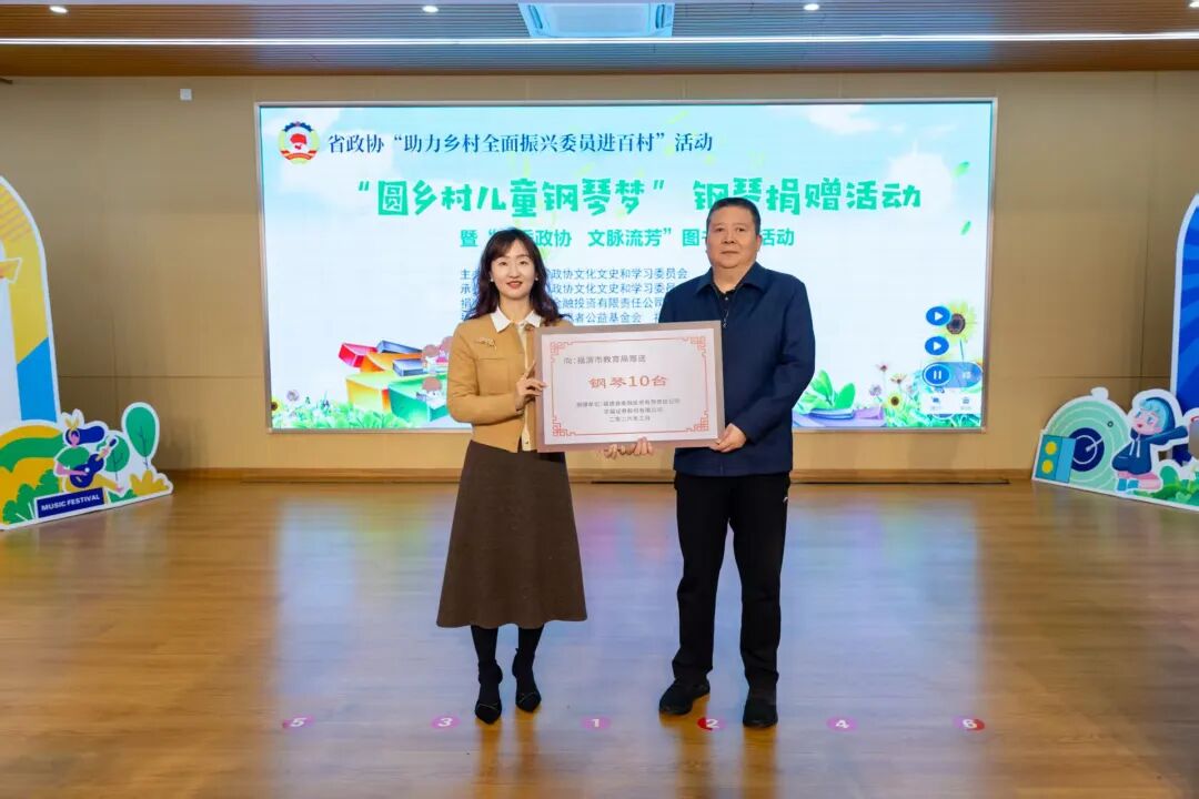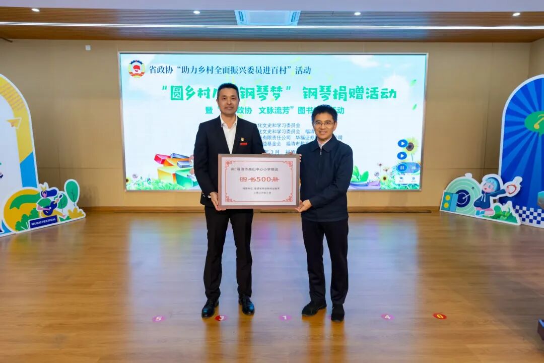 3月26日,省政协副主席刘献祥一行来榕开展“圆乡村儿童钢琴梦”钢琴捐赠活动暨“书香政协 文脉流芳”图书捐赠活动,并围绕“文化建设赋能乡村全面振兴”课题开展调研。捐赠仪式上,省政协向福清乡镇学校捐赠10台钢琴、向高山中心小学捐赠500册图书,福州市政协也积极响应,带来了一批优秀文史资料并在高山中心小学设立“书香政协”专柜。