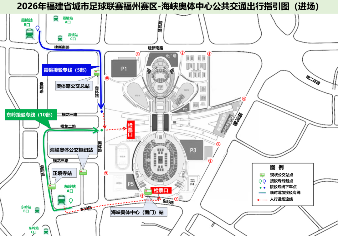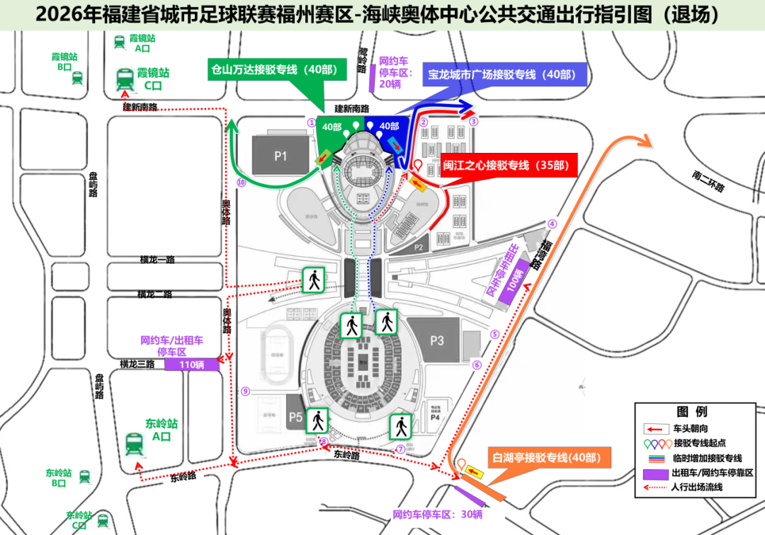 4月19日,2026年福建省城市足球联赛(简称“闽超”)开幕式及揭幕战将在福州海峡奥体中心举办,为方便观赛,福州将加密途经公交班次,增开接驳专线,鼓励广大球迷朋友选择公共交通出行。这份出行、停车指南请收好。