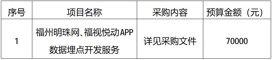 福州广播电视台对福州明珠网、福视悦动APP数据埋点开发服务项目进行单一来源谈判采购,现以邀请函的形式邀请北京思拓合众科技有限公司参加单一来源谈判。